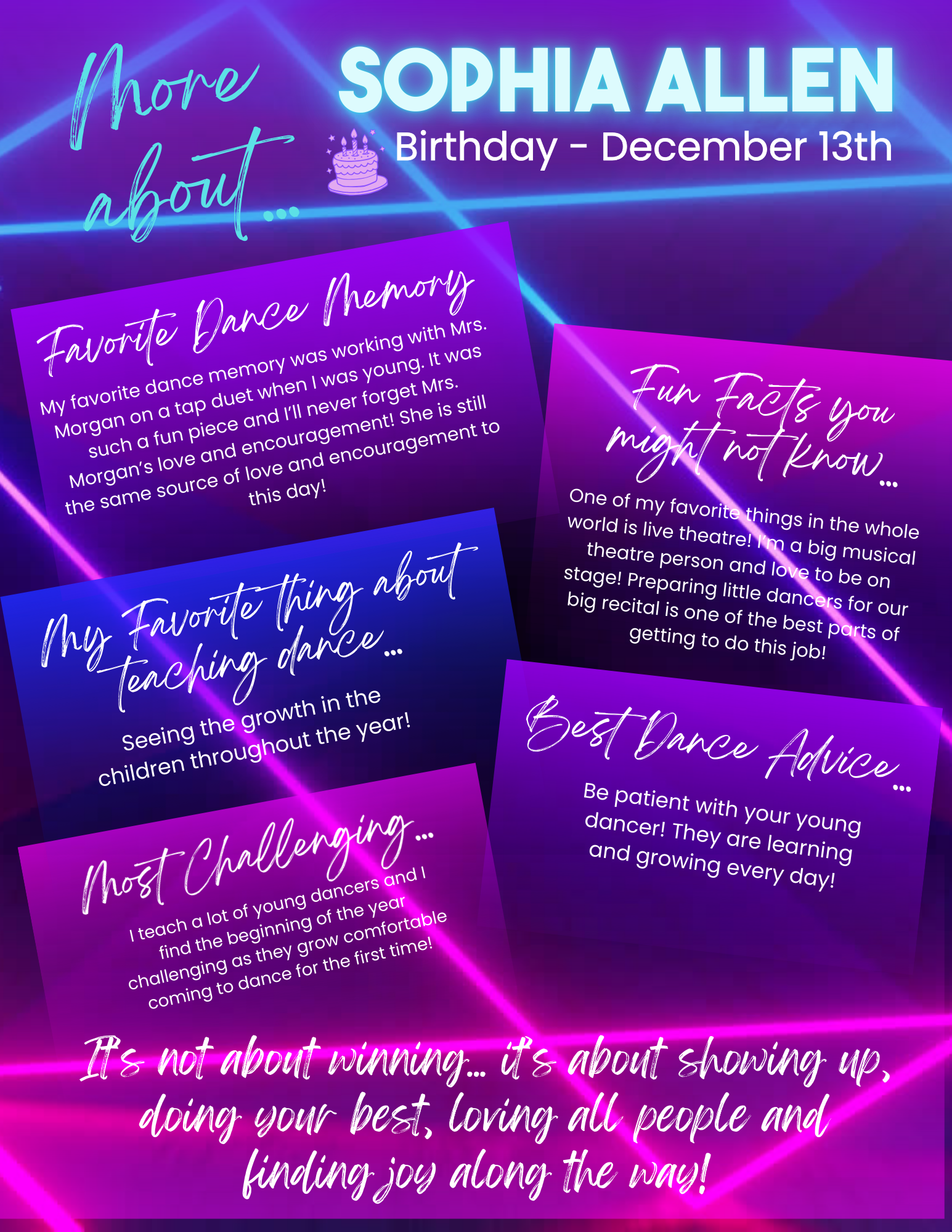 Sophia loves teaching! She can't wait to get started with all of her sweet new students this year and help spread the light that TDC stands for!